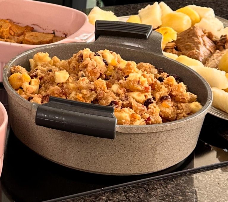 3️⃣ Adicione as Uvas-Passas Brasil Frut à panela, refogando até que uma leve crosta se forme no fundo da panela.